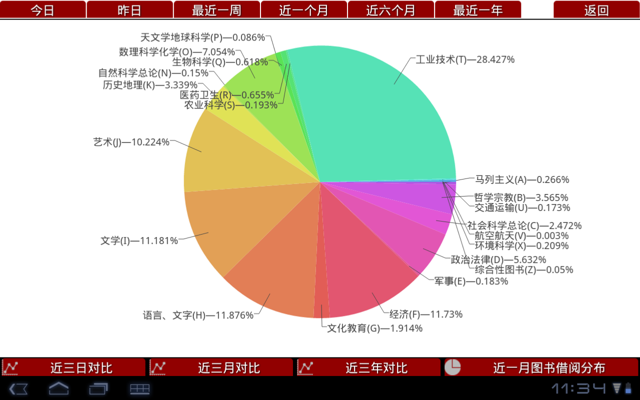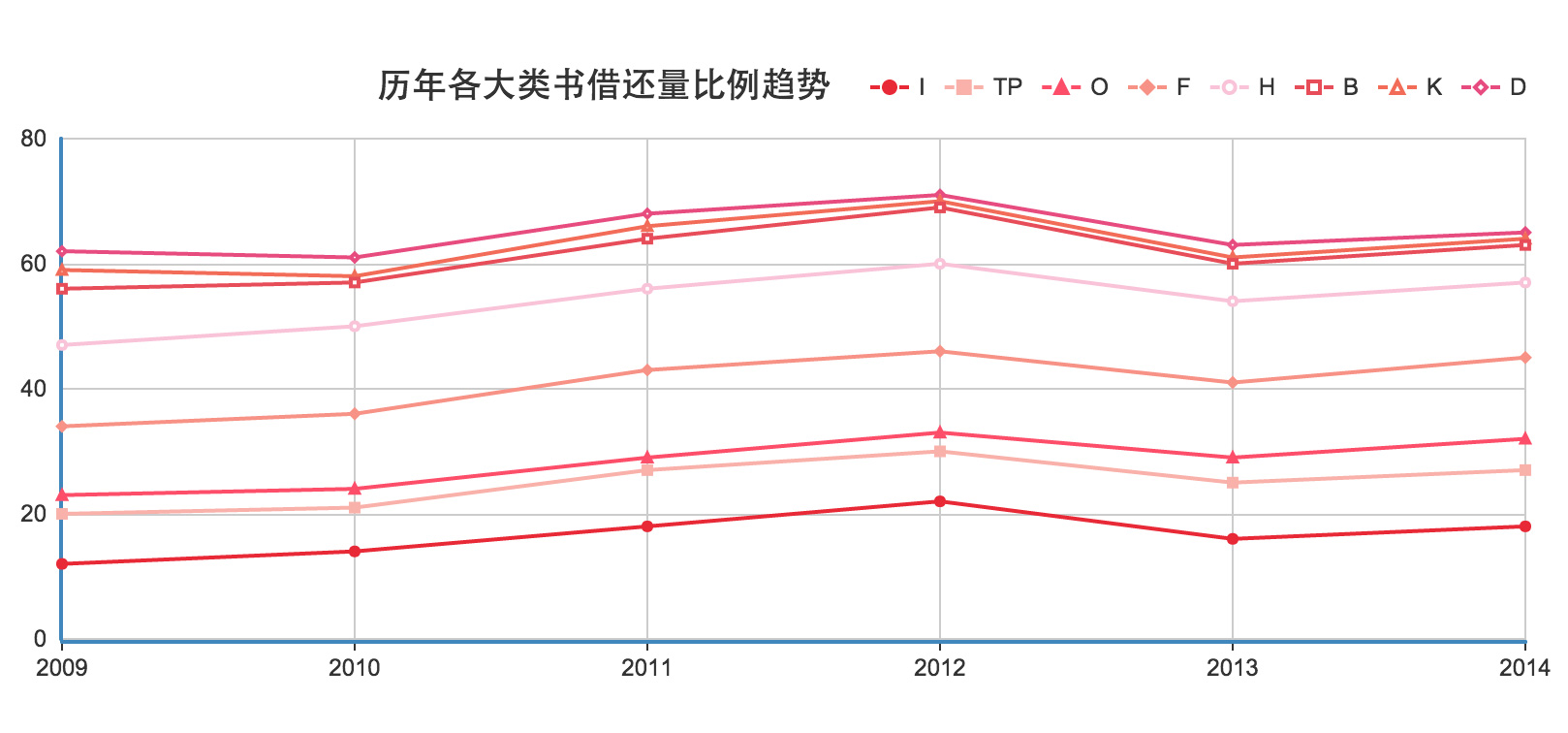 分析全館各大類(lèi)借書(shū)比例以及歷年各大類(lèi)書(shū)借還量比例趨勢